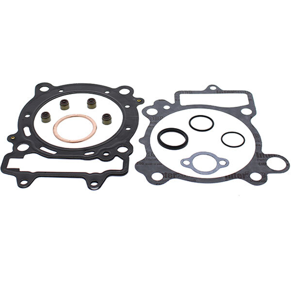 Includes every gasket O-ring and seal required to rebuild a top end. Valve seals, head, base, exhaust, tensioner, and other misc. gaskets and O-rings as required. Multi cylinder machines include enough components to rebuild multiple cylinders. Does not include formed rubber valve cover gasket. Formed valve cover gaskets are included in complete kit with oil seals.