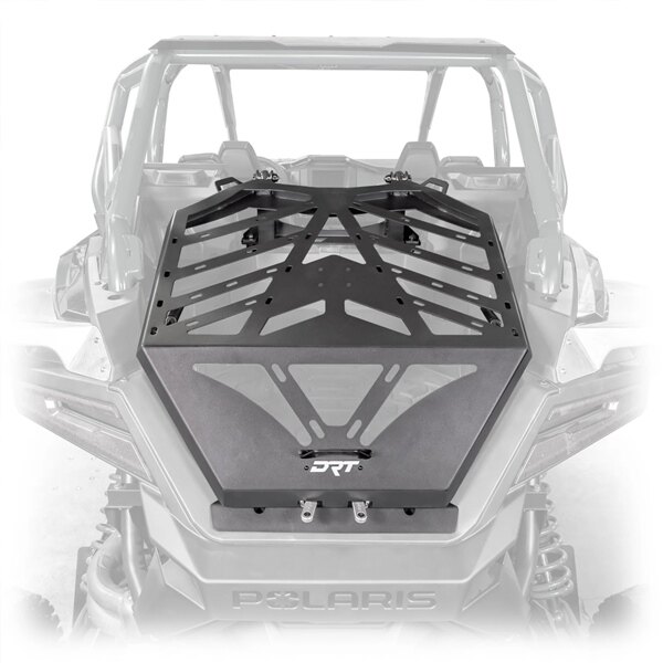 This adventure rack features a boxed design with tons of tie-down point options, heavy-duty latches, and gas struts to make accessing your storage easy. When used as a tire carrier, the rack will hold up to a 35" tire securely to keep you on the trails and running hard. The DRT Motorsports Polaris Pro Series tire carrier/Adventure rack V2.0 comes powder coated in DRT's signature sand black finish with high-grade hardware and is a complete bolt-on installation.