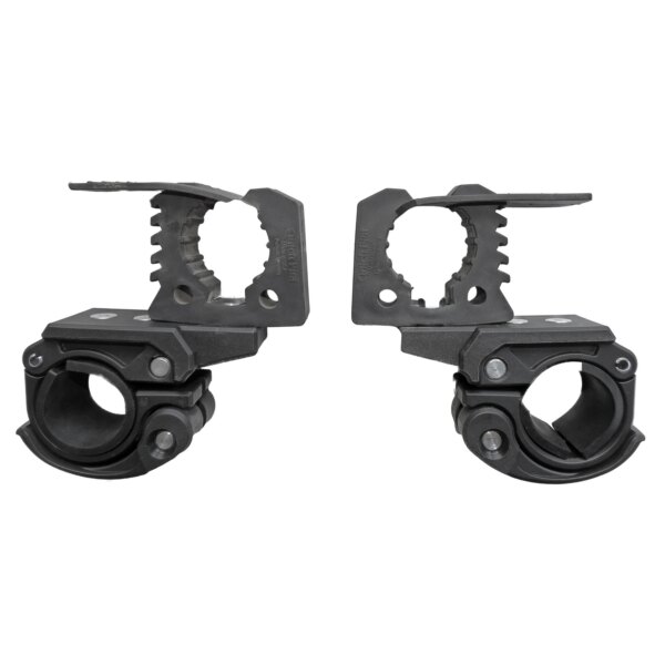 Can be mounted anywhere on the Hornet Rack inside or outside the rack in either an inverted or upright position. Pair of tool mounts comes complete with Hornet Fastclamp for simple secure tool less installation.