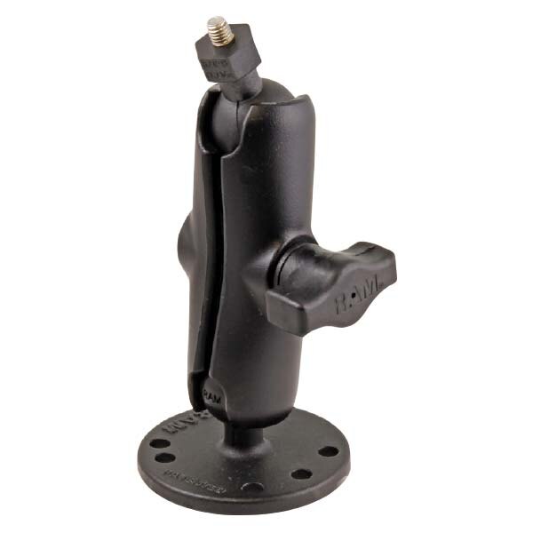 consists of a 2.5 diameter round base with the universal AMPS hole pattern, STANDARD size double socket arm and 1 diameter ball, containing a M6 x 30 SS HEX head bolt. The mount is designed with a RAM 1 diameter patented rubber ball and socket system that has adjustment points at both ends of the double socket arm; this allowing for almost infinite adjustment and perfect viewing angles. For Raymarine Dragonfly-4/5 & WiFish Devices