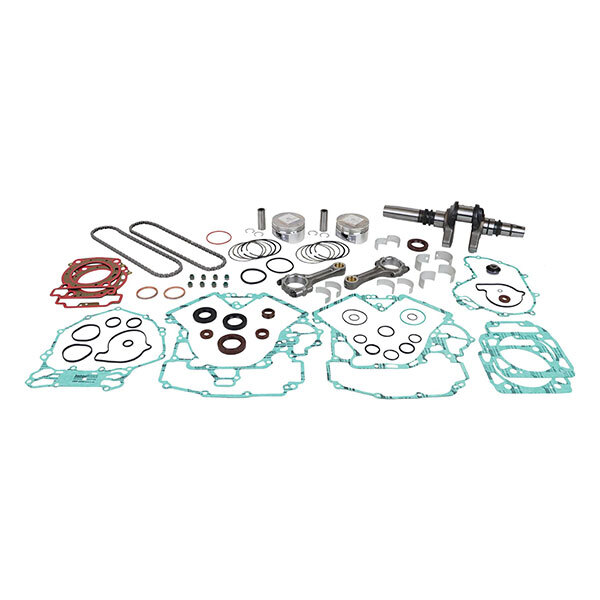 The only complete engine rebuild kit on the market. This kit combines the leading brands in one box (Hot Rods, Hot Cams, Vertex). Includes everything needed to rebuild a complete engine: Hot Rods heavy duty crankshaft & Hot Rods counter balancer bearing kit, when applicable & Hot Rods main bearing and seal kit & Hot Rods transmission bearing kit & Hot Rods water pump rebuild kit & Vertex piston kit & Vertex complete gasket & oil seal kit & Vertex wrist pin bearing, when applicable & Hot Cams cam chain, when applicable